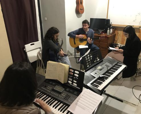 Clases de guitarra, bajo, piano, batería, improvisación y canto (individuales y grupales) y grupos de lenguaje musical, complementos musicales, grupo instrumental (combo), canto coral y armonía moderna. Nuestra Escuela de Música cuenta con profesores de amplia experiencia, un programa de enseñanza sistemático y transversal y unas instalaciones acogedoras que incluyen: