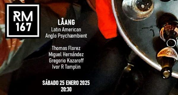 Laang, cuarteto formado por Ivor R Tamplin al live sampling, kalimba, Gregorio Kazaroff a la percusión, corneta, Miguel Hernández a la electrónica, efectos y Tomás Flórez a la guitarra, efectos. Más información en https://laangmusic.bandcamp.com/.