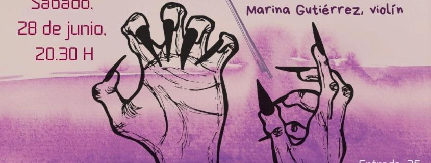 Creación escénico-musical a partir del poemario ‘Verano animal’, de Esmeralda R. Vaquero, con el acompañamiento de Marina Gutiérrez. Poesía y violín, cuerda y voz, junto a otros elementos que harán de este encuentro un hogar feroz de música y palabra.