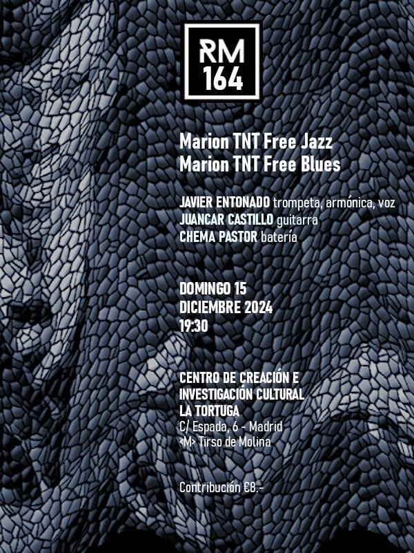 Raras Músicas Sesión 164 Domingo 15 diciembre 19.30hs - Marion TNT Free Blues es un trío (Chema Pastor a la batería, Juancar Castillo a la guitarra y Javier Entonado a las voces, armónica, trompeta y acoples) haciendo versiones de blues clásico o blues rock y las van destrozando de forma paulatina a medida que va […]